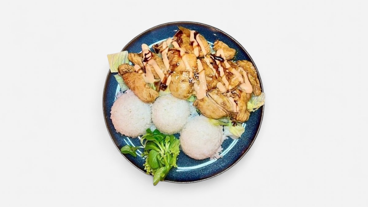 170g chicken grill kura, ryža, 8ks crunchy maki, 4ks uramaki marimondon, 1x coleslaw šalát, 280g (1,3,4,7,11)