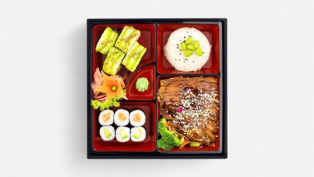 170g kačica s ryžou, 4ks uramaki marimondon, 3ks maki avokádo, 3ks maki losos, 1x zelenina 280g (1,3,4,7,11)