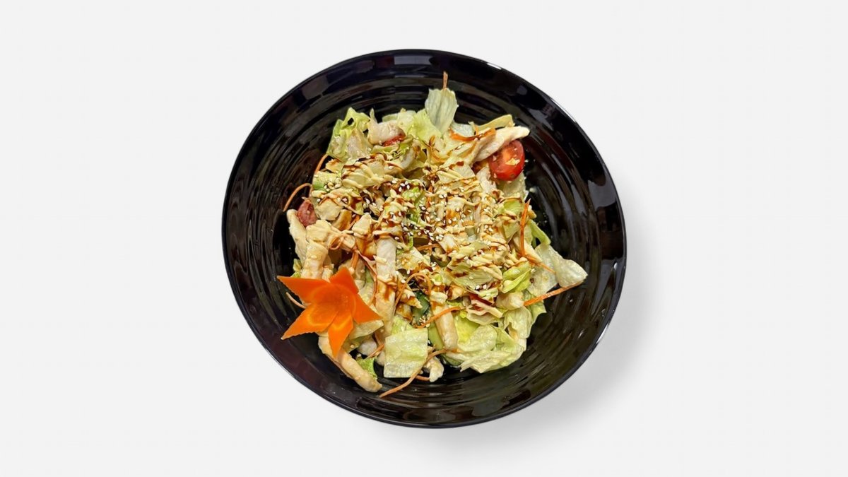 kuracie mäso, šalát, paprika, rajčiny, omáčka, sezam 180g ( 3,6,10,11)