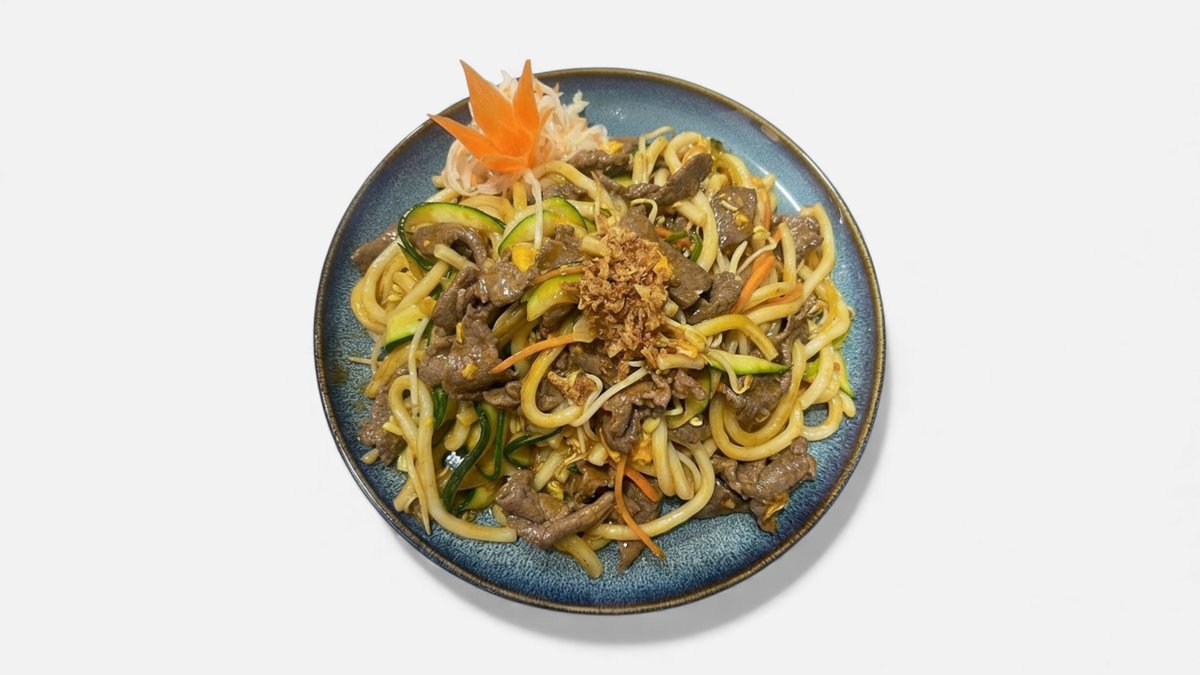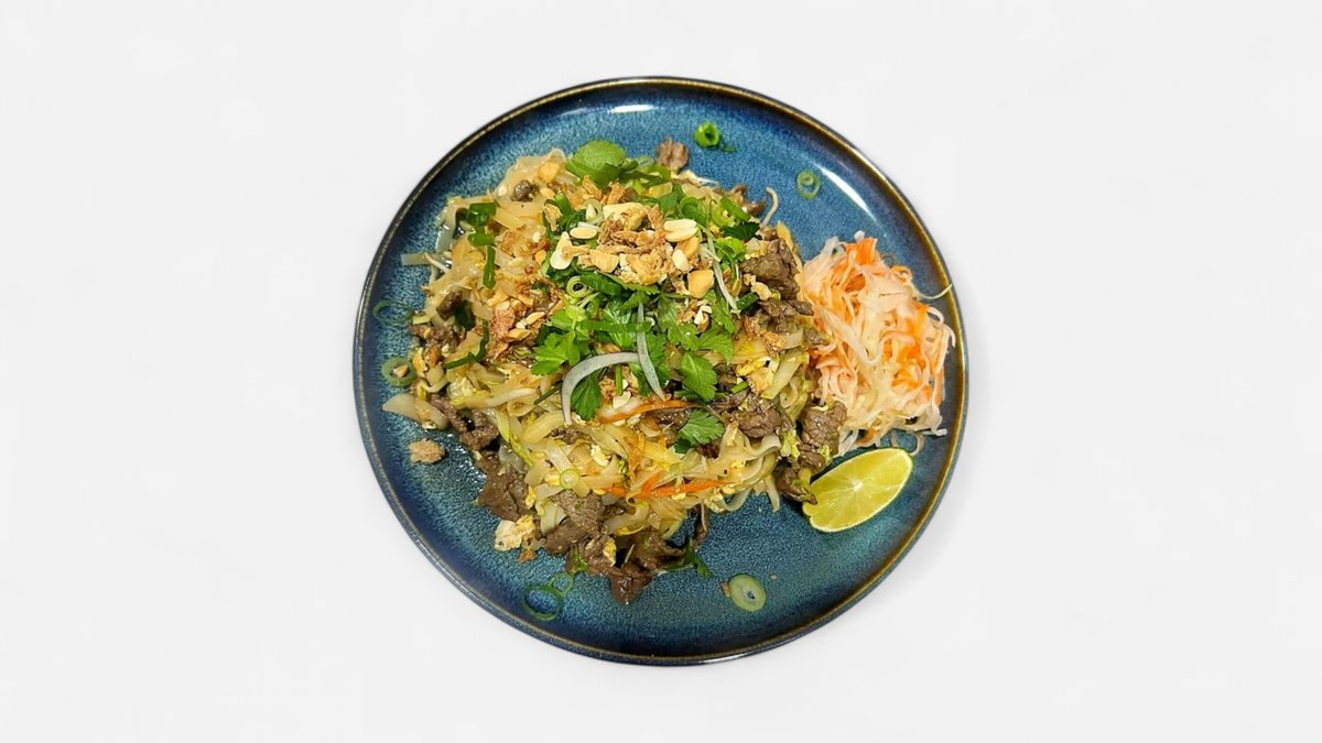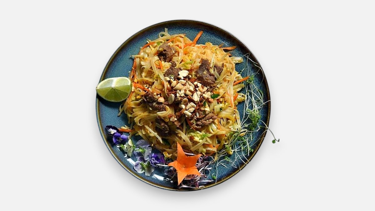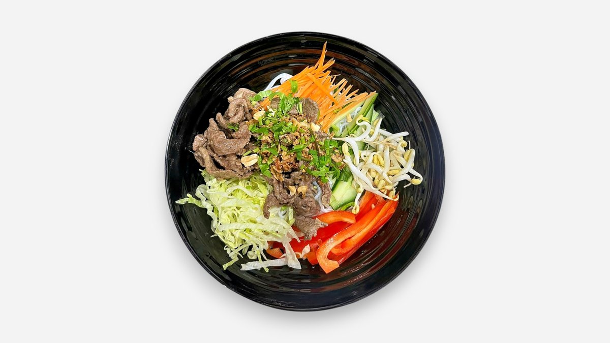 Vývar, široké rezance, koriander, cibuľka, variant proteín a zelenina. 0,7l / obsahuje: 2,4