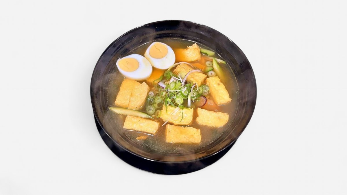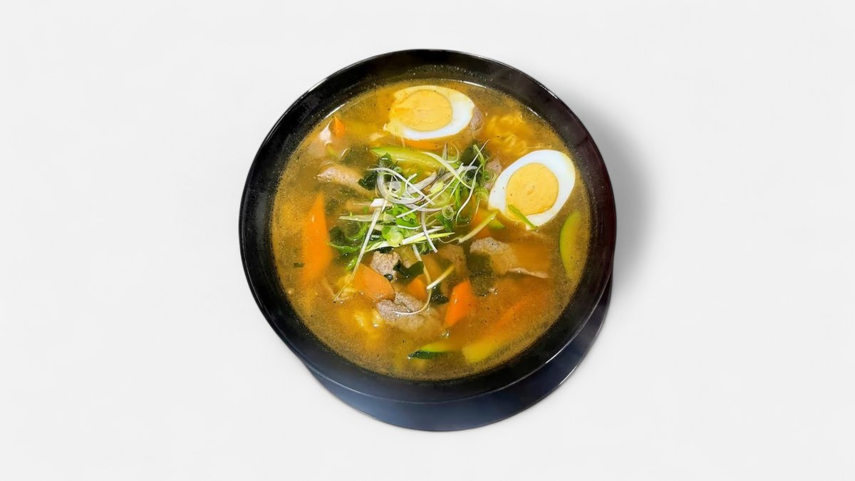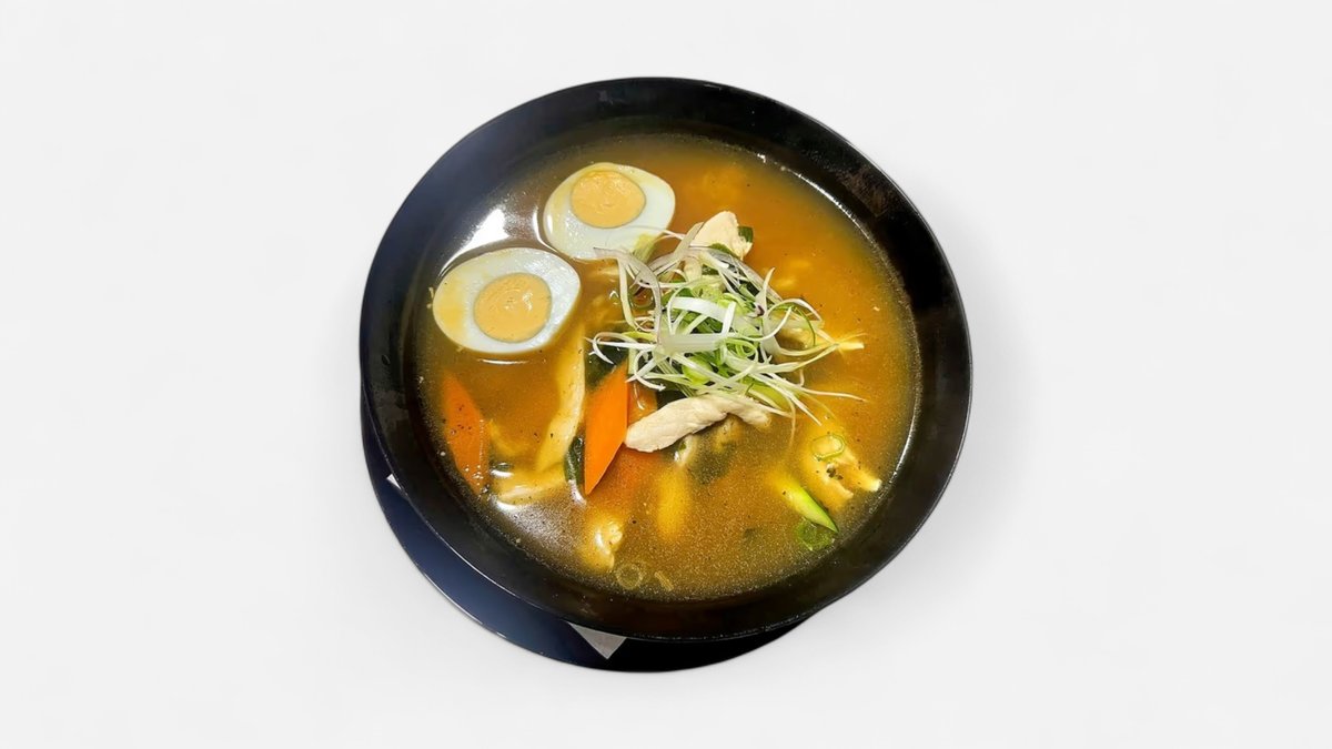 Silná japonská polievka s rezancami, mäsom, vývar, vajco, variant proteín a zelenina. 0,7l / obsahuje: 1,2,3,6