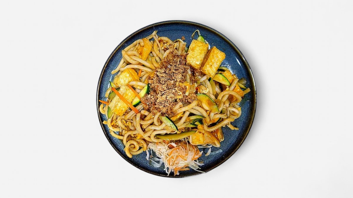Opekané Udon rezance s vajíčkom, variant proteín a zelenina. 400g