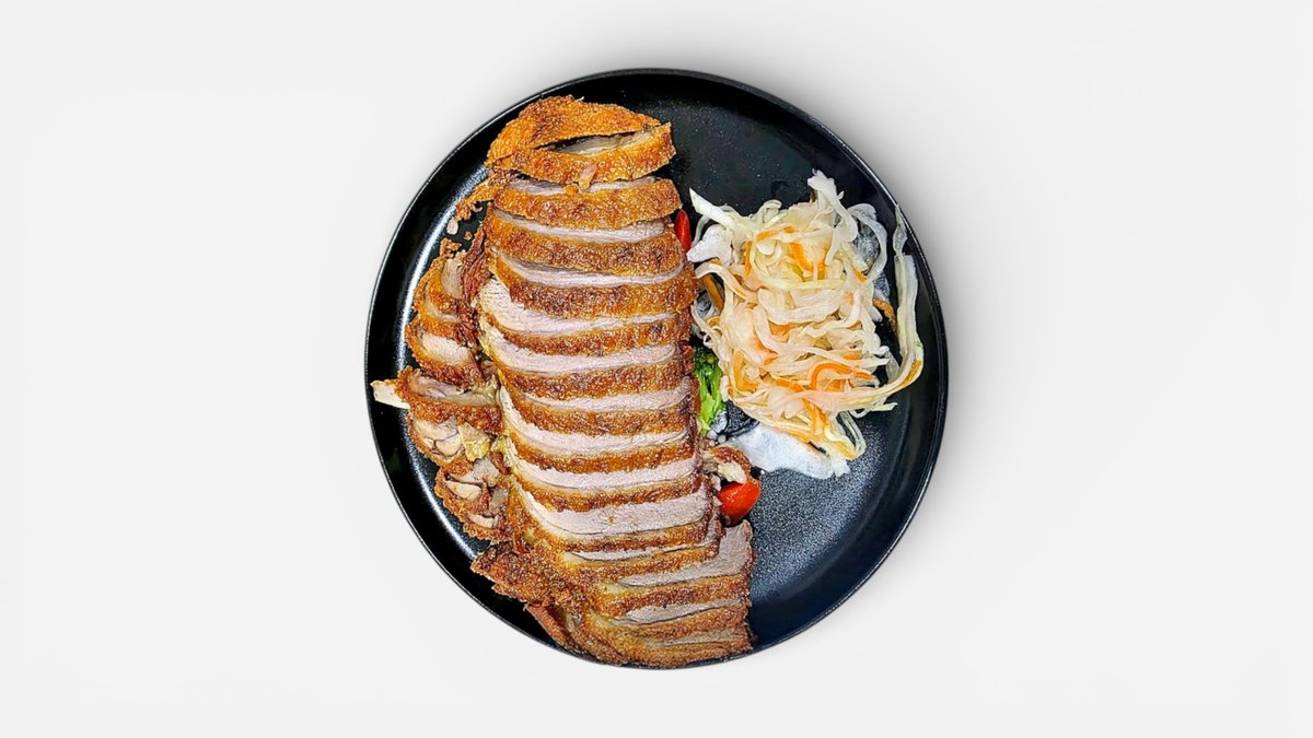 Marinované kačacie plátky na chrumkavá spôsob, grilovaná zelenina, hríby a sladkokyslá omáčka. 200g / obsahuje: 1,3,4,6,11,14