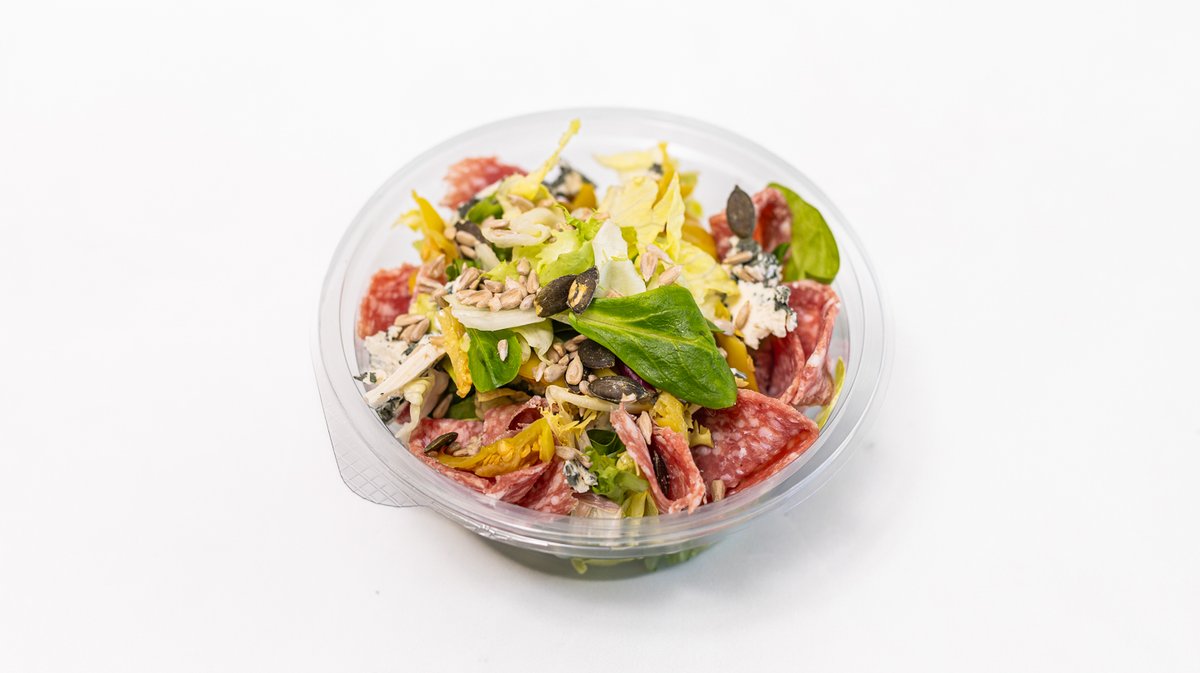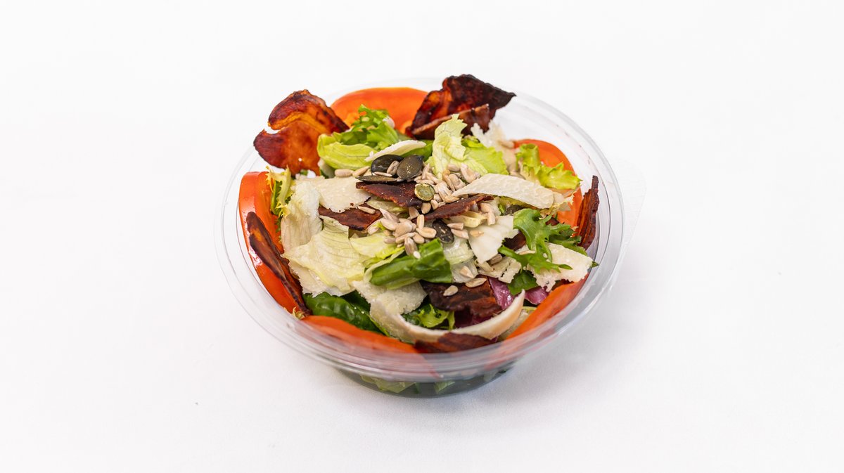 dresing, rajčina, slaninový chips, syr vršatec, ručne triedený praný šalát mix, extra panenský olivový olej 290g / obsahuje: 1,3,6,7,11