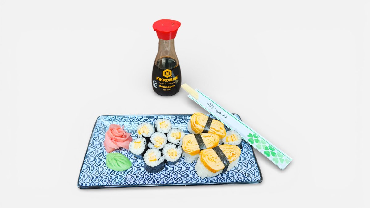 3x nigiri tamago , 8 ks maki tamago vajíčko