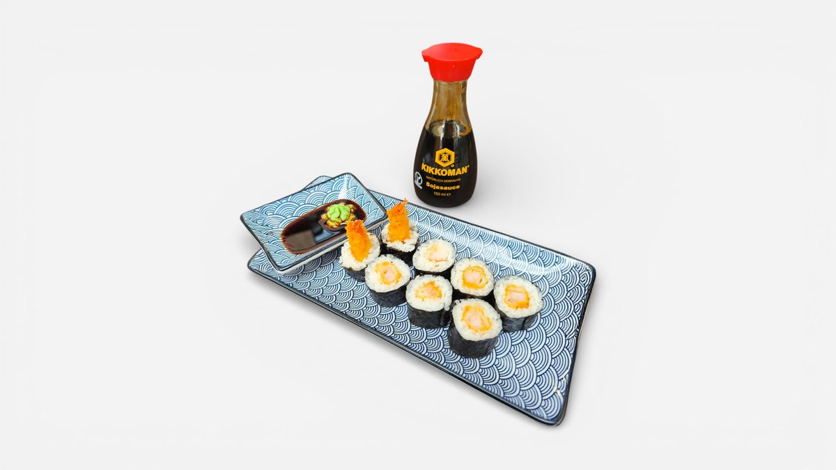 6 maki krevety obalované+ 6 avokádo maki+ 2 maki uhorka+ 2 nákladaná redkva/ mango