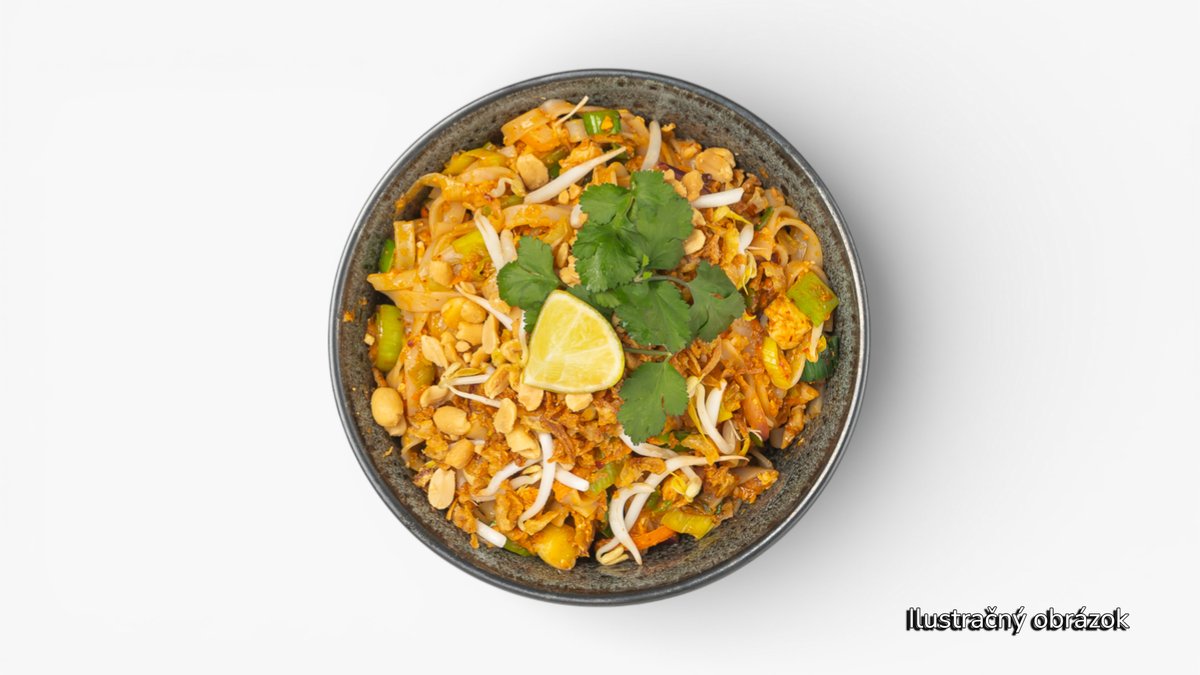 Opekané ryžové široké rezance, vajíčko, tamarin omáčka, klíčky, čili