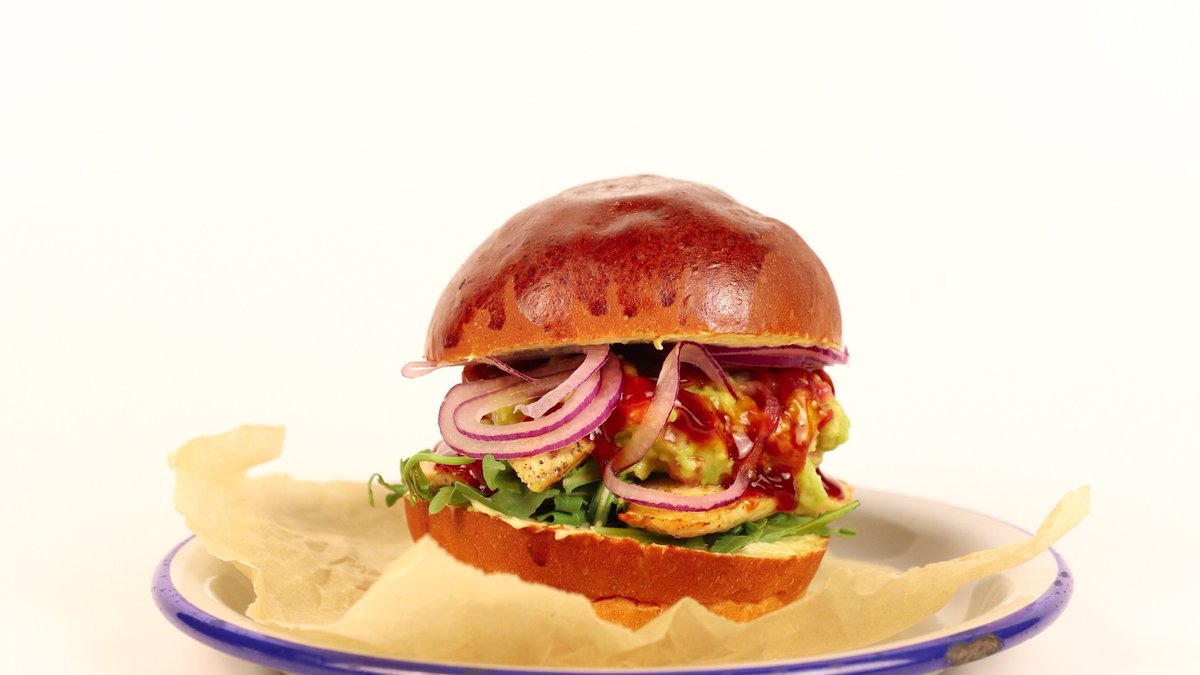 hovädzie mäso-EKO farma Turová (160g), bazalková mayo, BBQ, slanina, dvojitý syr Cheddar, rajčina, uhorka, červená cibuľa, polníček + coleslaw šalát zdarma