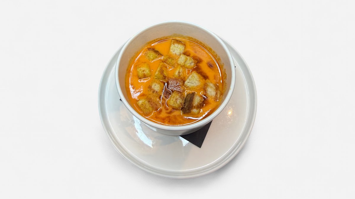Paprikový krém s kurkumovými krutónmi a chilli olejom