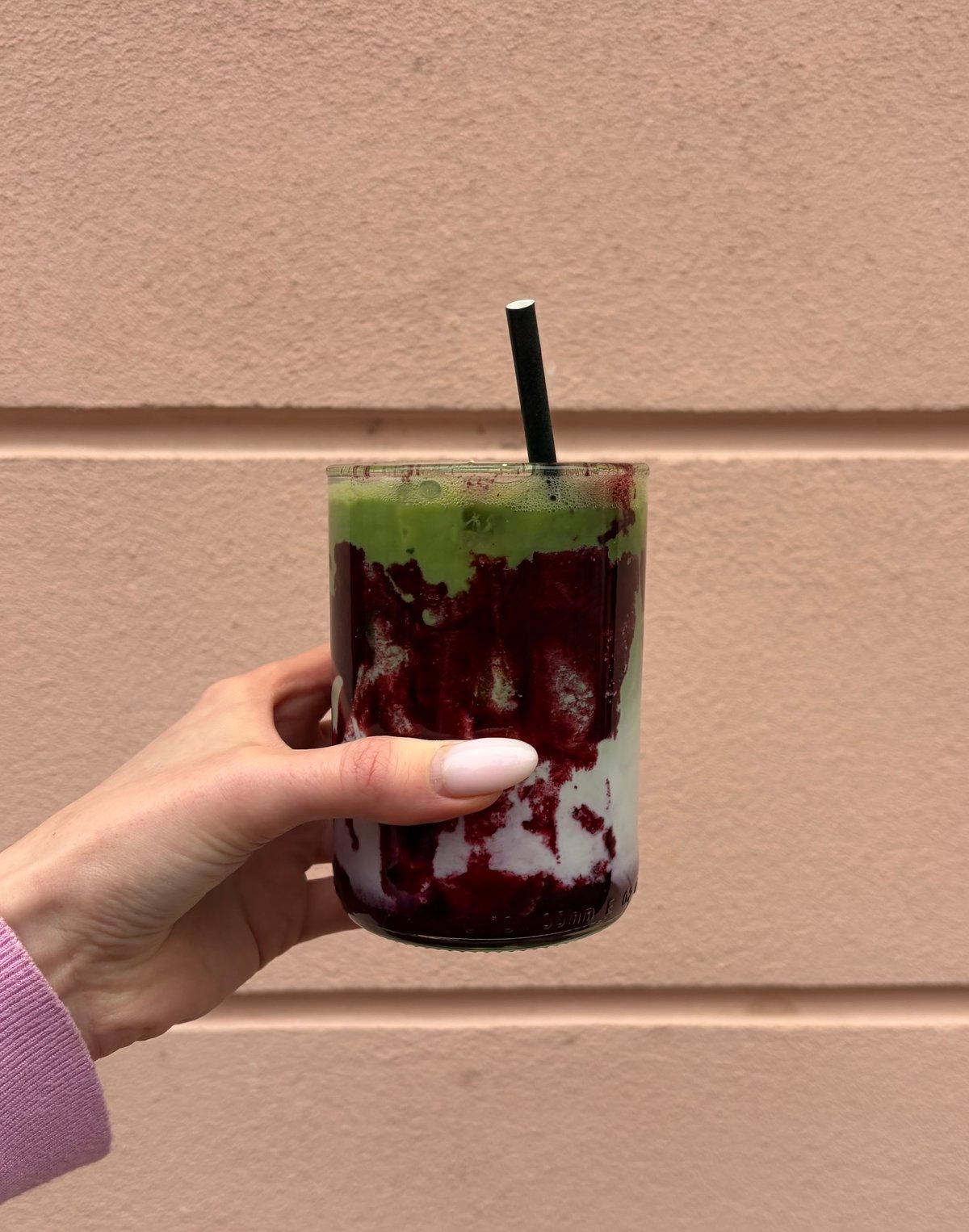 Raspberry matcha latte hot