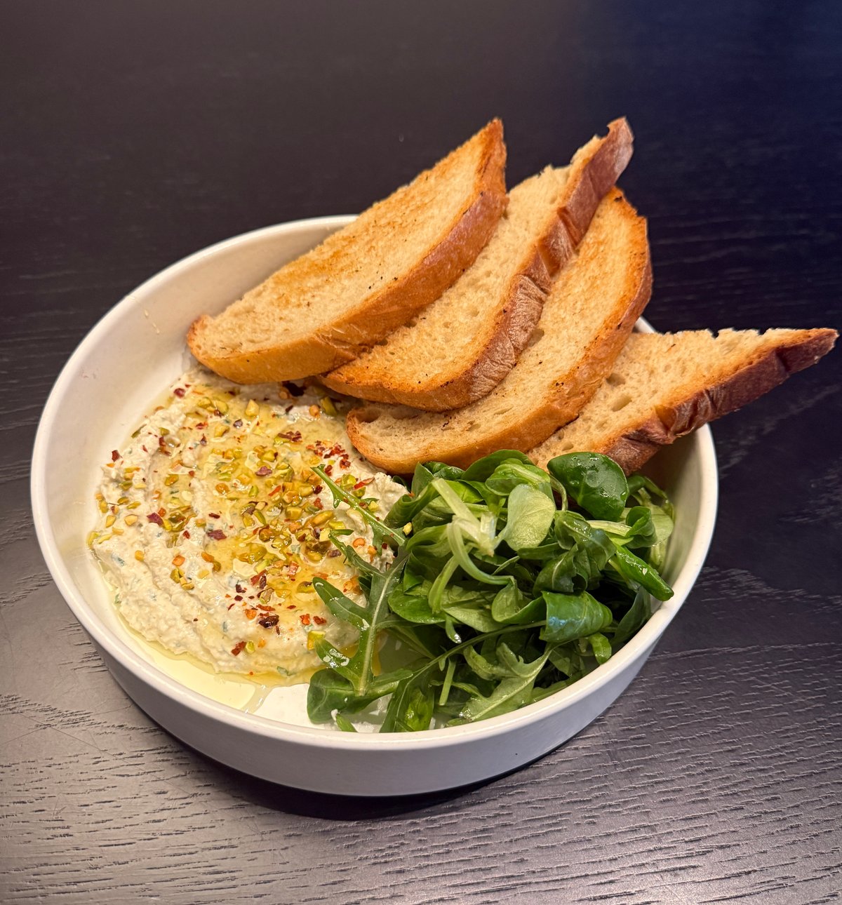 (225g) chlebík, nátierka z fety a zelených olív, pistácie, med, chilli, Alergény: 1, 7, 8, 12