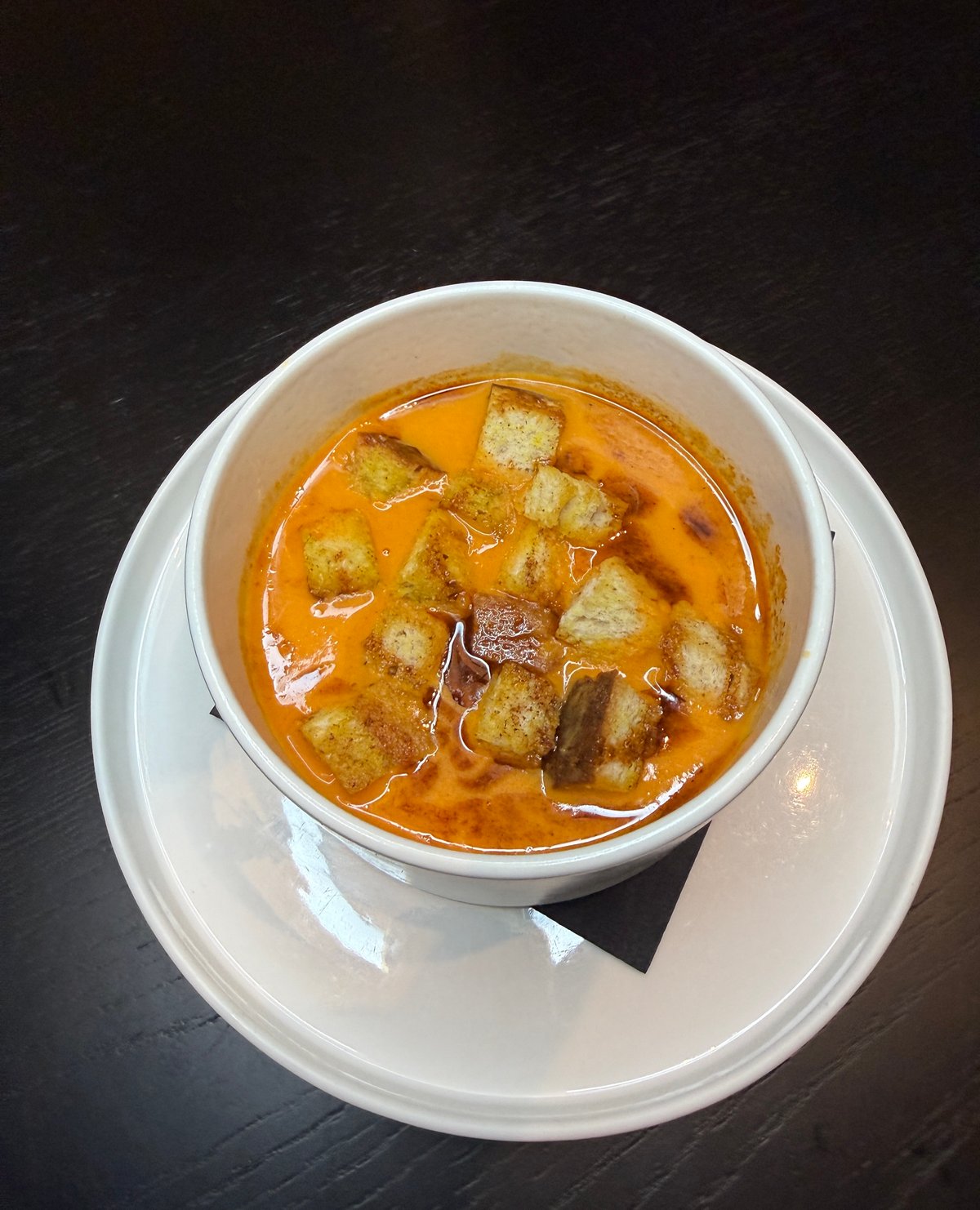 Paprikový krém s kurkumovými krutónmi a chilli olejom