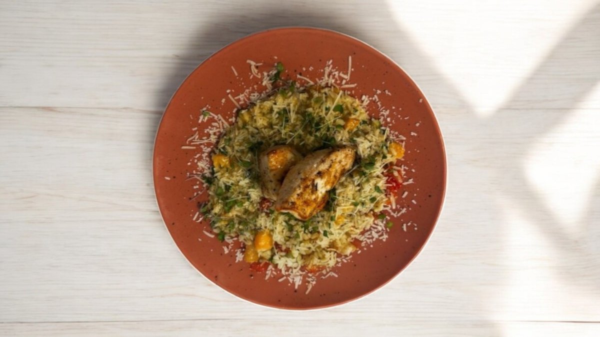 Rozmarínové kuracie prsia z kuk.kuriatka ,maslové zeleninové rizoto