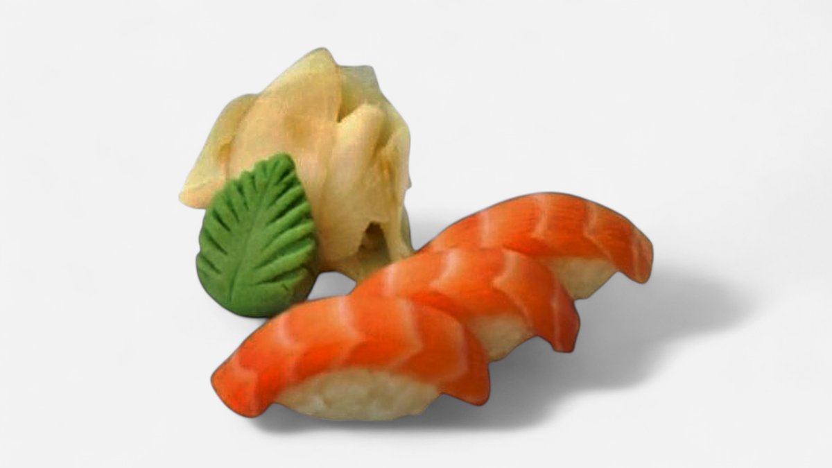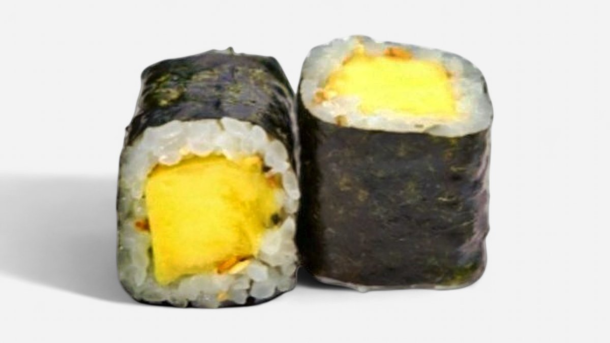 Mango, sushi ryža, morská riasa, wasabi, nakladaný zázvor, sójová omáčka, sezam, goma wakame riasa A: 11, 12, sójová omáčka 1/6