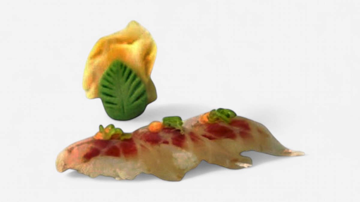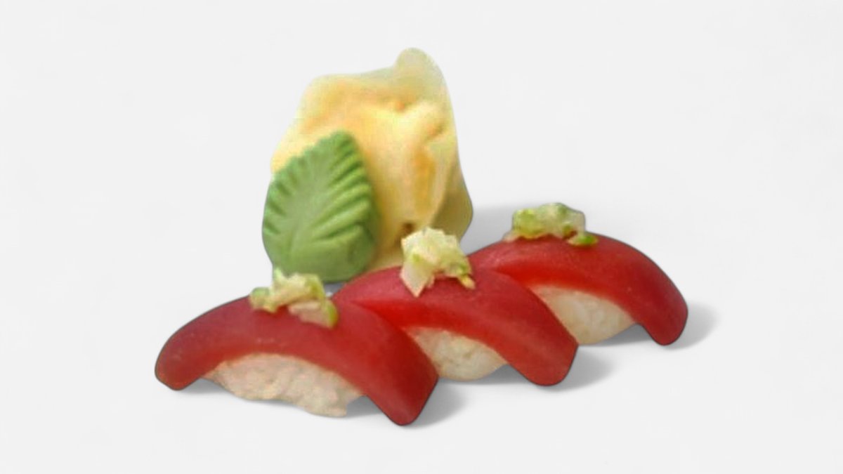 Sushi ryža, goma wakame riasa, tuniak, mango, uhorka, kukurica, avokádo, zázvor, baby špenát, edamame, reďkovka, mikrobylinky, sezam, teriyaki omáčka, japonská majonéza, sezamová omáčka A: 3, 4, 6, 11