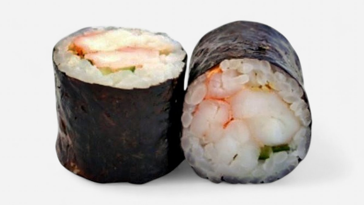 Kreveta, šalát, wasabi, nakladaný zázvor, sójová omáčka, sezam, sezamová omáčka, uhorka, goma wakame riasa A: 2, 11, 12, sójová omáčka 1/6