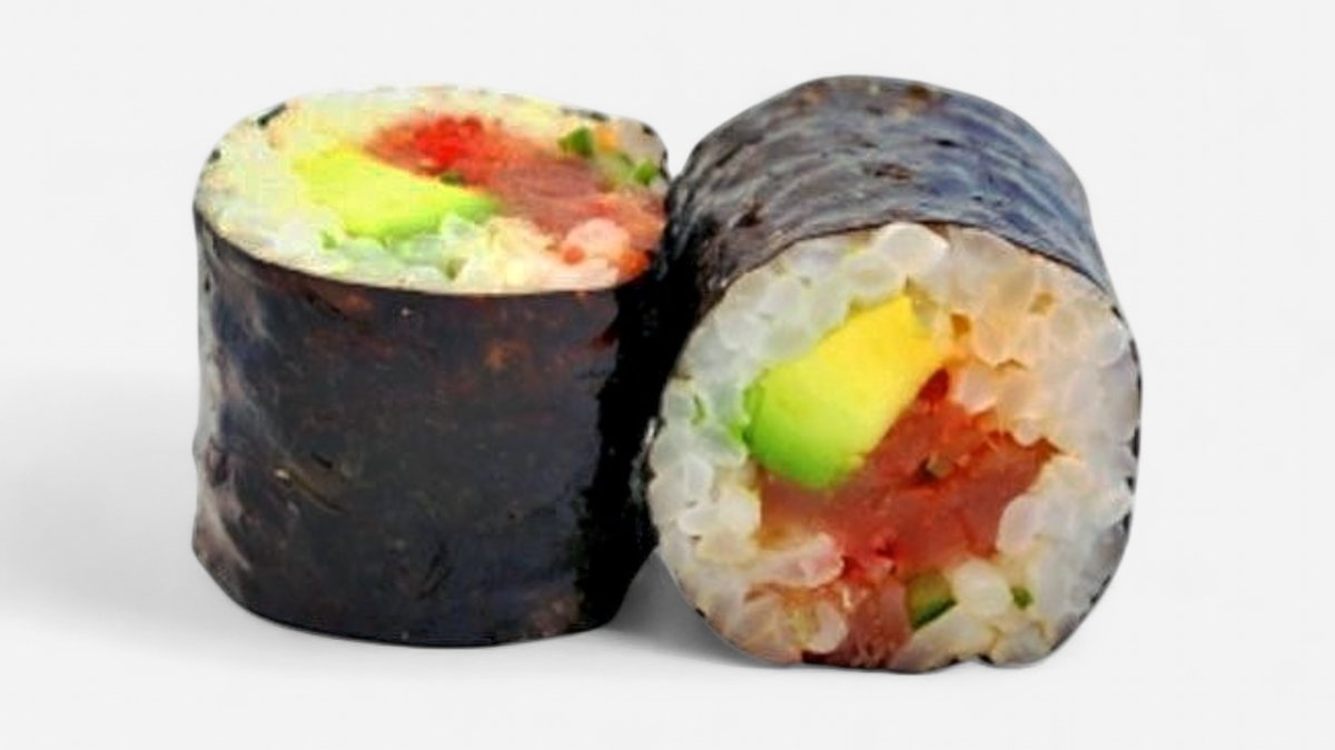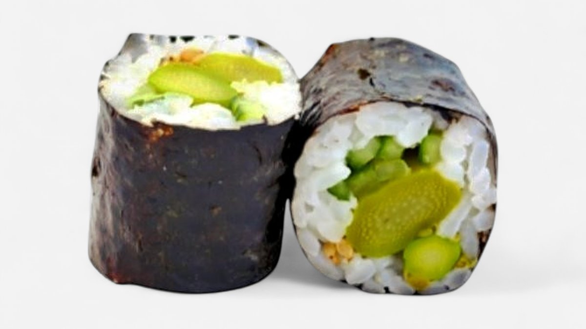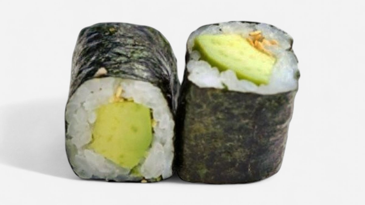 Avokádo, uhorka, krémový syr, morská riasa, sushi ryža, wasabi, nakladaný zázvor, sójová omáčka, sezam, goma wakame riasa A: 3, 7, 11, 12, sójová omáčka 1/6 Porcia predpoklad: 1 osoba