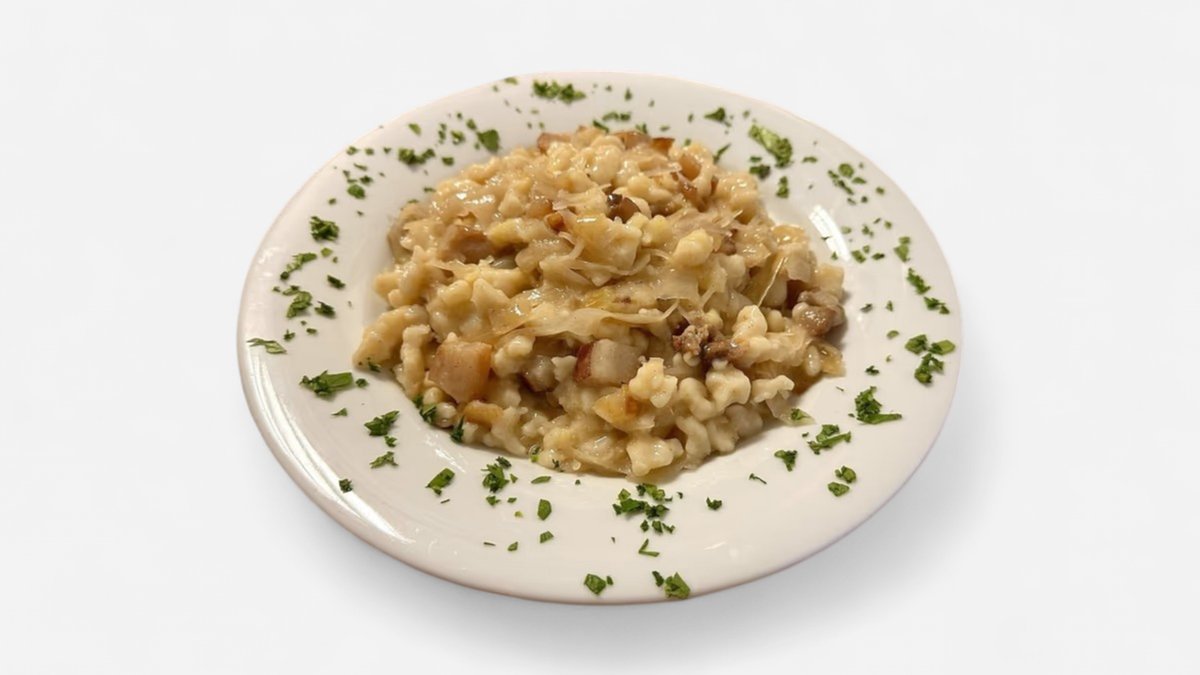 Kapustové strapačky s opekanou slaninkou 350g A: 1,3,7, Minimálna hmotnosť všetkých pokrmov, príloh a šalátov vrátane dresingov je uvedená pri každej porcii v gramoch po ich tepelnej úprave. Objem polievok je uvádzaný v ml. Minimálna hmotnosť mäsa, mäsových výrobkov a syrov je uvedená v zátvorke ( ) v ich surovom stave, resp. pred ich tepelnou úpravou. Hmotnosť kuracieho stehna je uvádzaná v surovom stave s kosťou a kožou ak nie je uvedené inak. Pôvod mäsa Slovensko. Zoznam Alergénov: 1. obilniny obsahujúce lepok a výrobky z obilnín, 2. Kôrovce a výrobky z kôrovcov, 3. Vajcia a výrobky z obsahom vajec, 4. Ryby a výrobky z rýb, 5. Arašidy a výrobky z obsahom arašidov, 6. Sójové bôby a výrobky z nich, 7. Mlieko a mliečne výrobky, 8. všetky druhy orechov a výrobky s obsahom orechov, 9. Zeler a výrobky s obsahom zeleru, 10. Horčica, 11. Sezamové semeno a výrobky s obsahom sezamového semena, 12. Oxid siričitý a siričitany v koncentrátoch vyšších ako 10mg/kg alebo 10ml/1l, 13. Vlčí bôb, 14. Mäkkýše a výrobky z mäkkýšov.