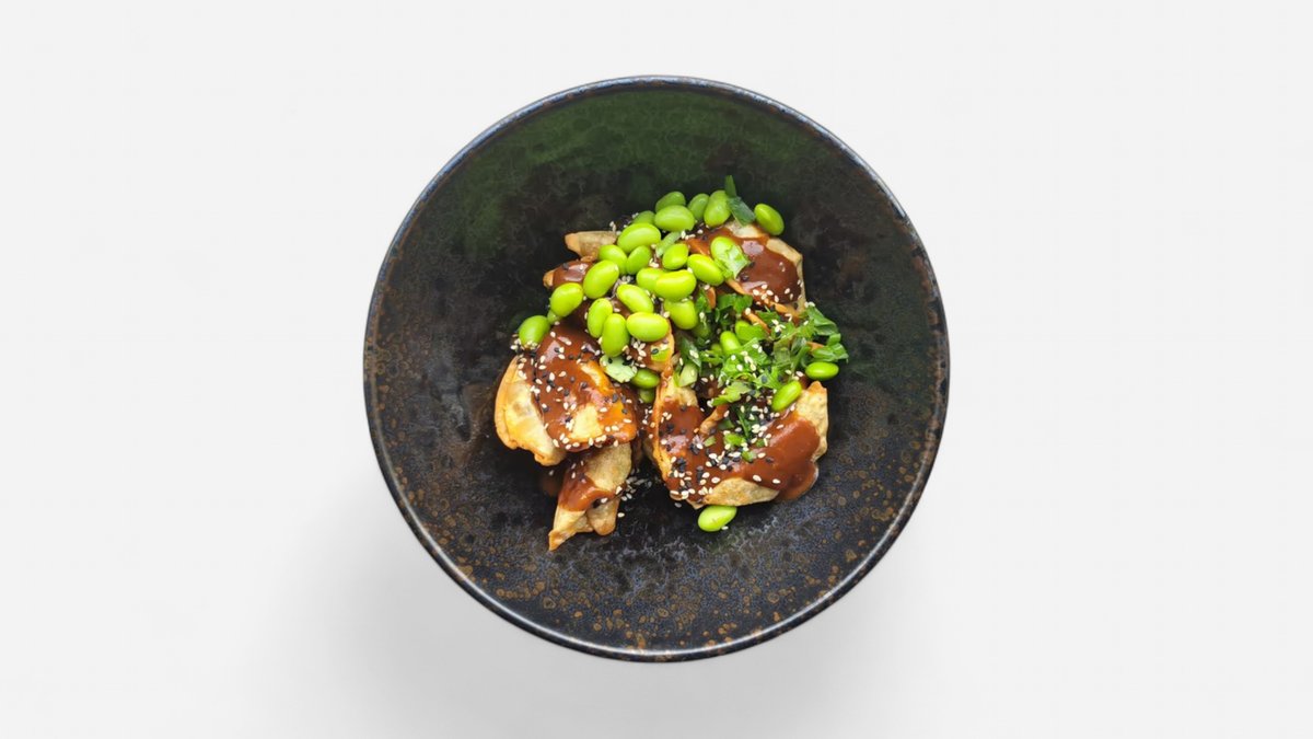 Gyoza s japonskou omáčkou a edamame + nápoj