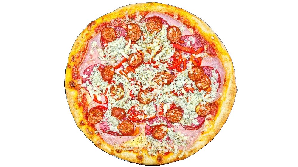 pomodoro, syr, Ε‘unka, slanina, kukurica, baranie rohy, oregano. 600 g / obsahuje: 1,3,7