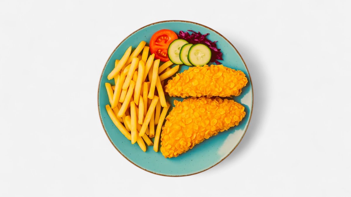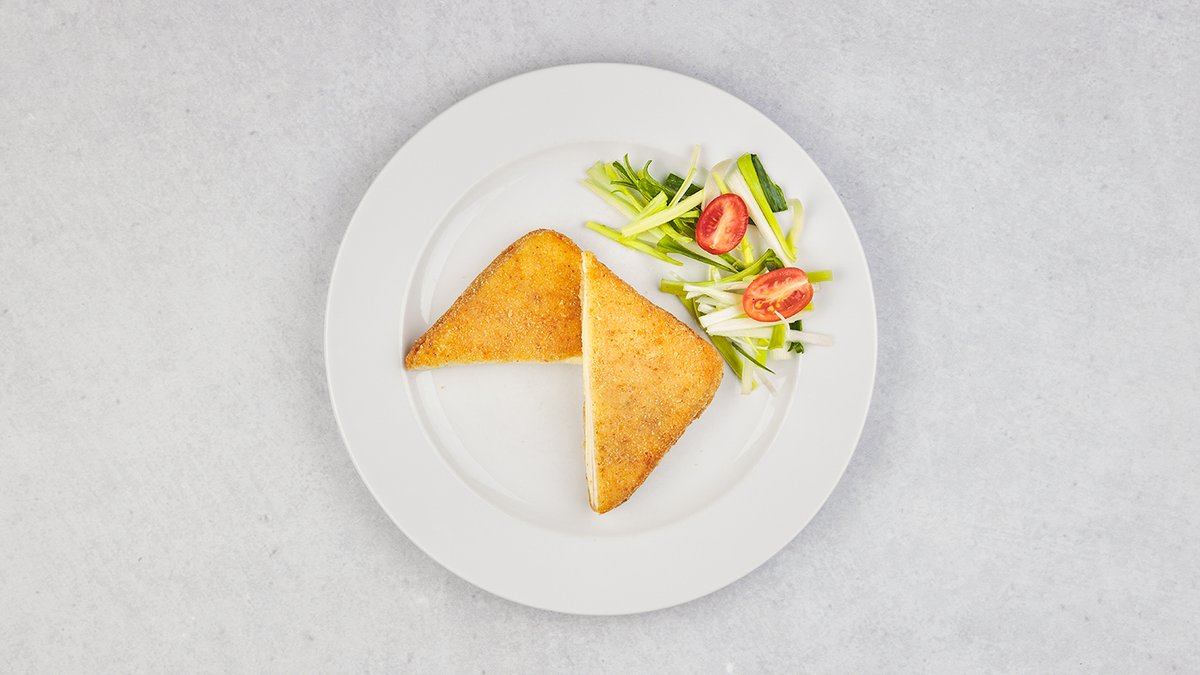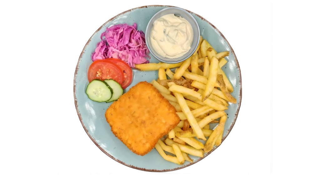 (170/180/70) Vegan mozzarella violife obalenΓ‘ vo vegan trojobale - mΓΊke, vajahite a strΓΊhanke, hranolky, vegan tatarskΓ‘ omΓ‘Δka (10), zeleninovΓ‘ obloha / obsahuje: 1,6