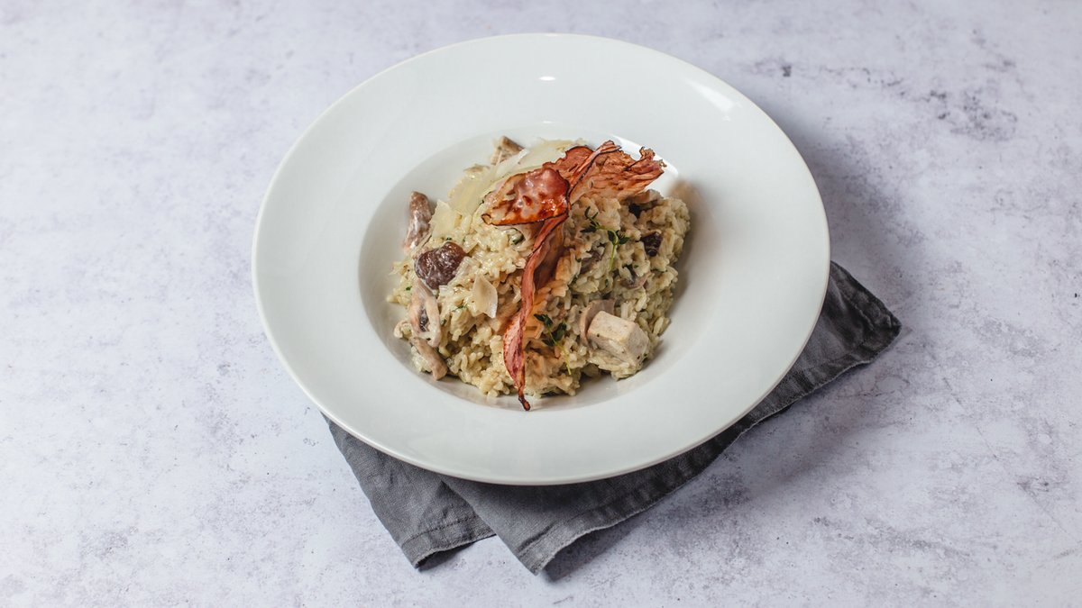 (400g) ryΕΎa, huby, kuracie mΓ€so, smotana, ΔervenΓ‘ cibuΔΎka, korenie, parmezΓ‘n / obsahuje: 7