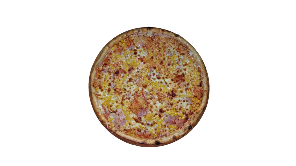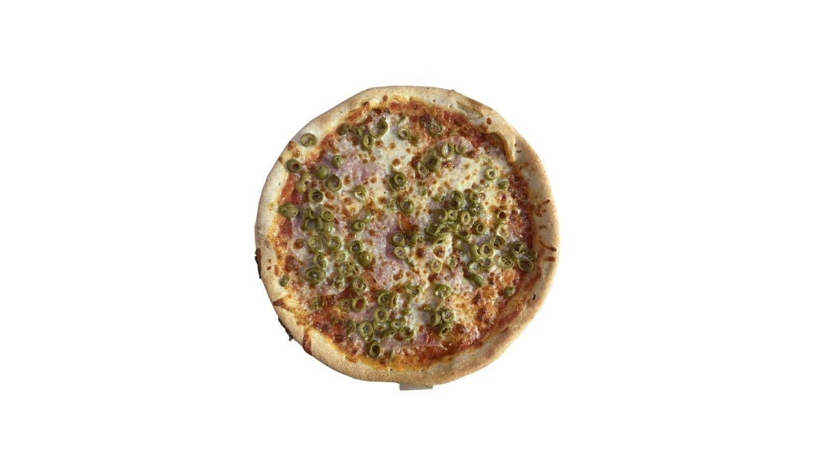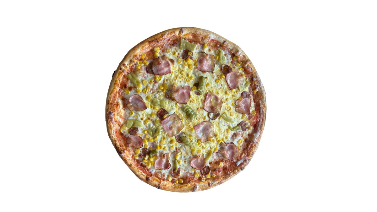 paradajkový základ, syr Mozzarella, šunka, kukurica, olivy, šampiňóny 0,54kg