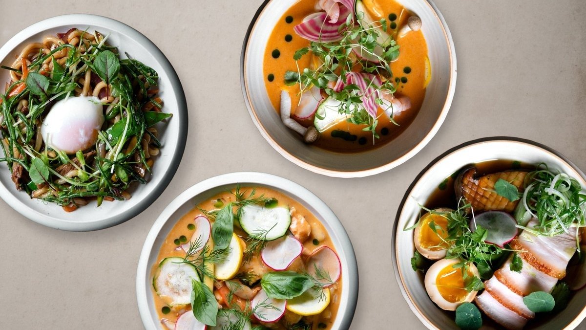 kokosová jemne pikantná polievka, sklenné rezance, cuketa, mrkva, špargľa, coriander 0,4l 2,4,6 (veggie)