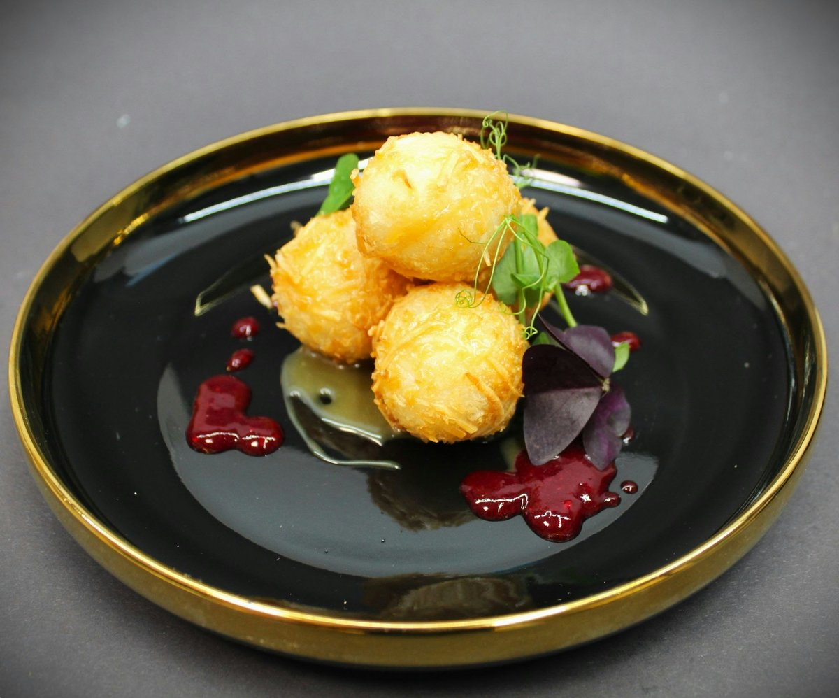 IN: tempurovaná kreveta, mayo, avokádo OUT: lososový tatarák, pažítkový krém, popcorn z pohánky 1,2,3,4,6