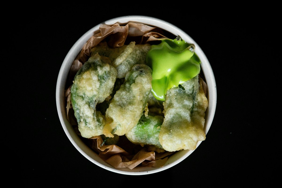 IN: maslová ryba v tempure, philadelphia, avokádo, špargľa. rukola OUT: riasa v tempure, japonská mayo, bylinky A: 1,3,4,6,7,10
