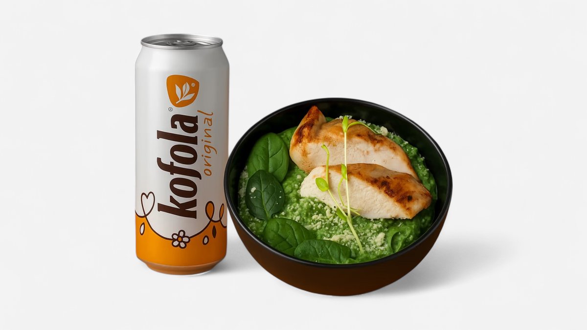 Špenátové rizoto so šampiňónmi, kuracím steakom a parmezánom + kofola