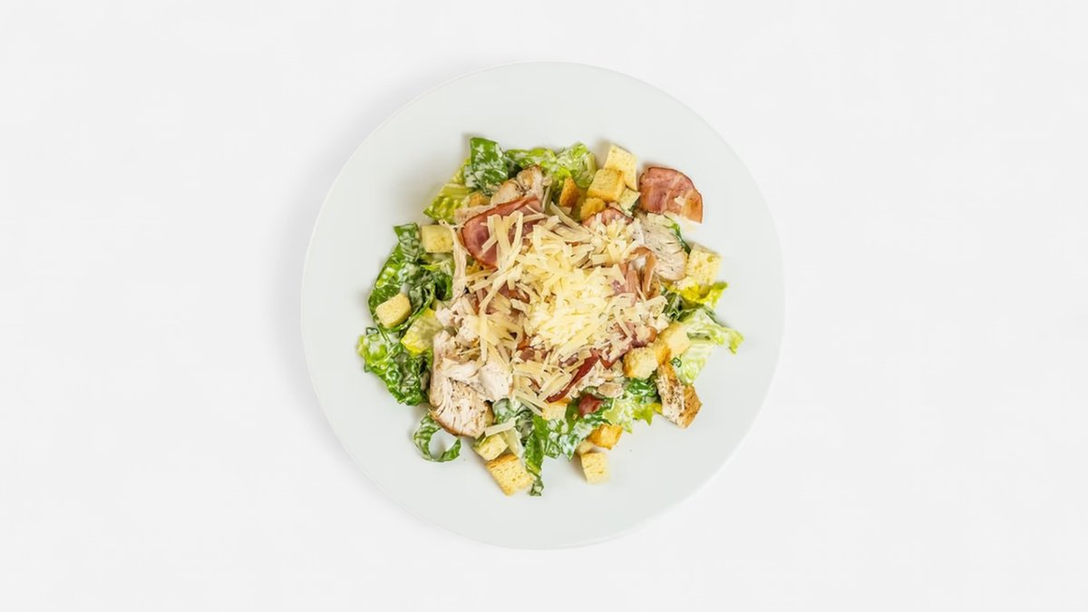 s grilovaným kuracím mäsom, prosciuttom, parmezánom, krutóny, dressing, vajíčko 350g / obsahuje: 1,3,4,7 Fotka je ilustračná