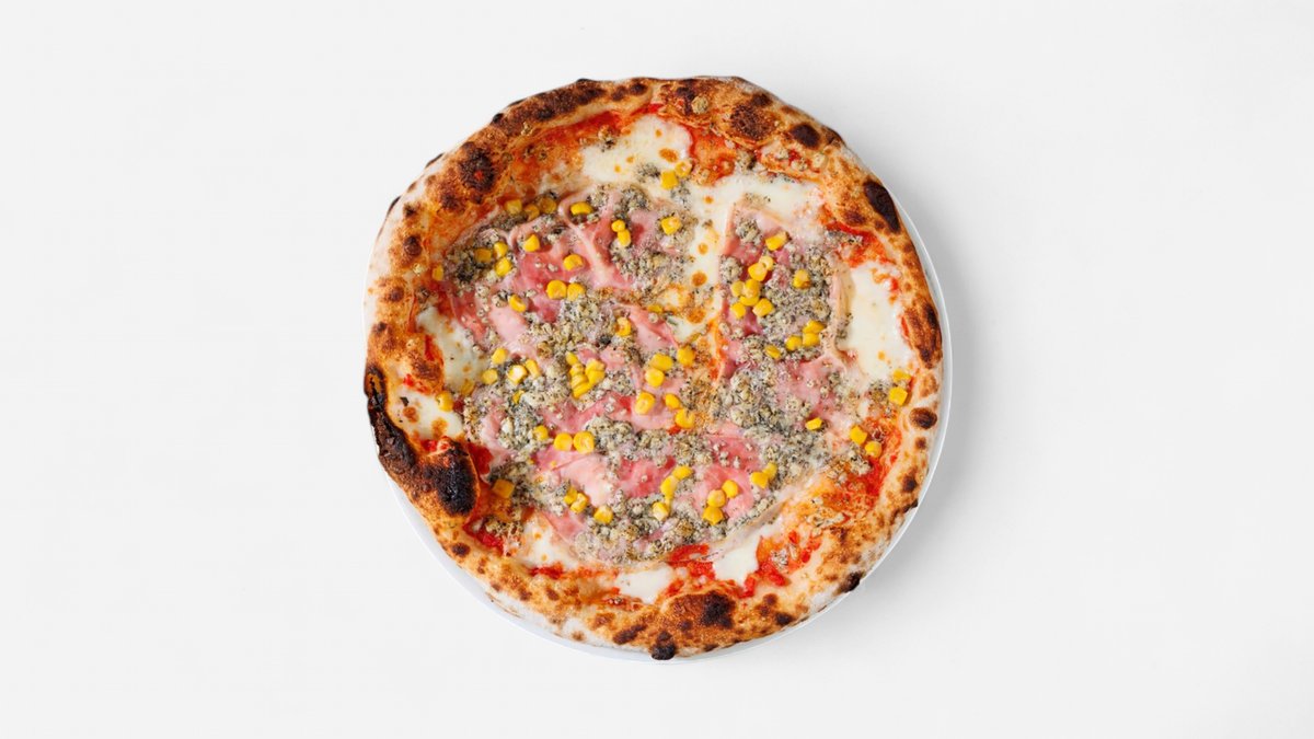 Paradajkový základ, mozzarella, šunka, niva, kukurica 480g