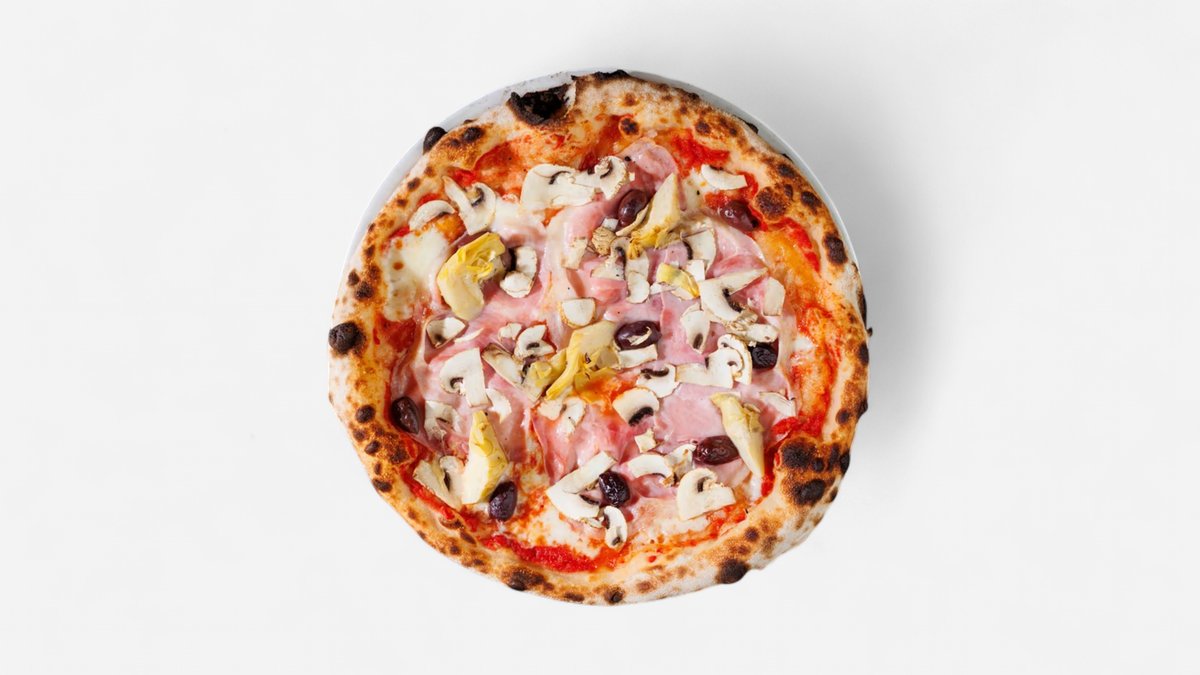 paradajkový základ, mozzarella fior di latte, šunka, šampiňóny, artičoky, čierne olivy 490g