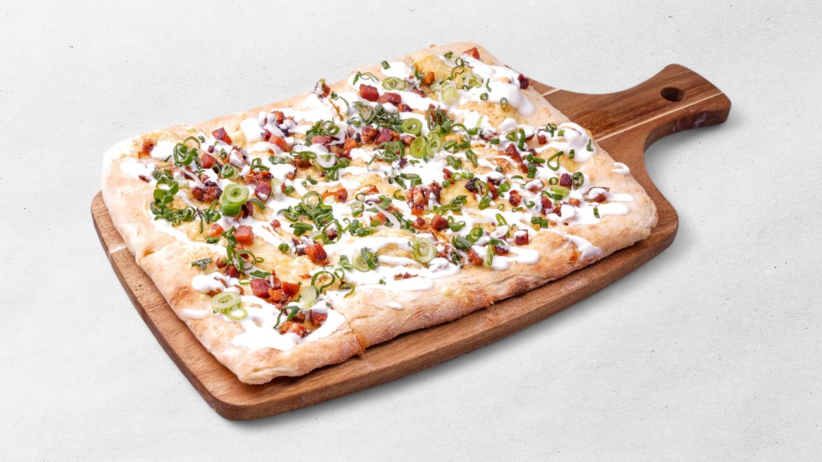 kyslá smotana, slanina, údený syr, jarná cibuľka
