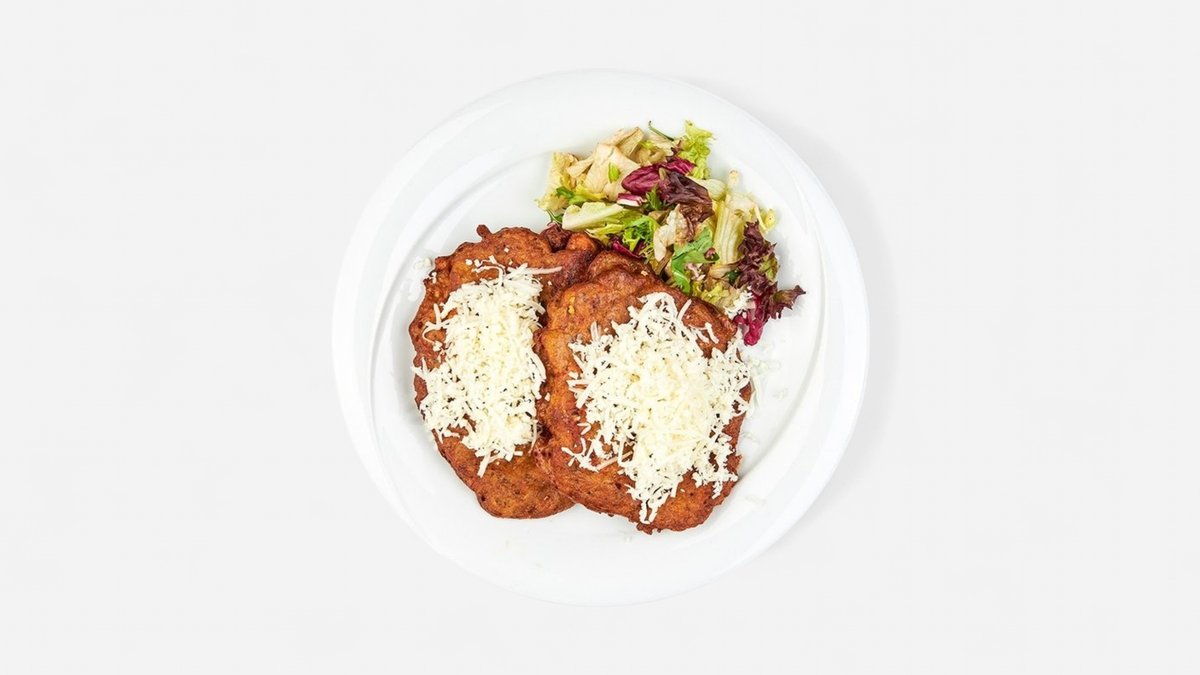kuracie a bravčové mäso v zemiakovej placke posypanej syrom 300g/ obsahuje: 1,3,7