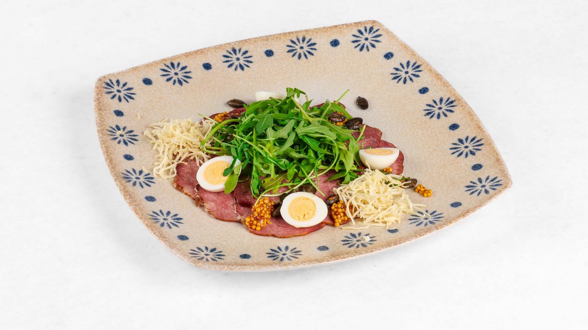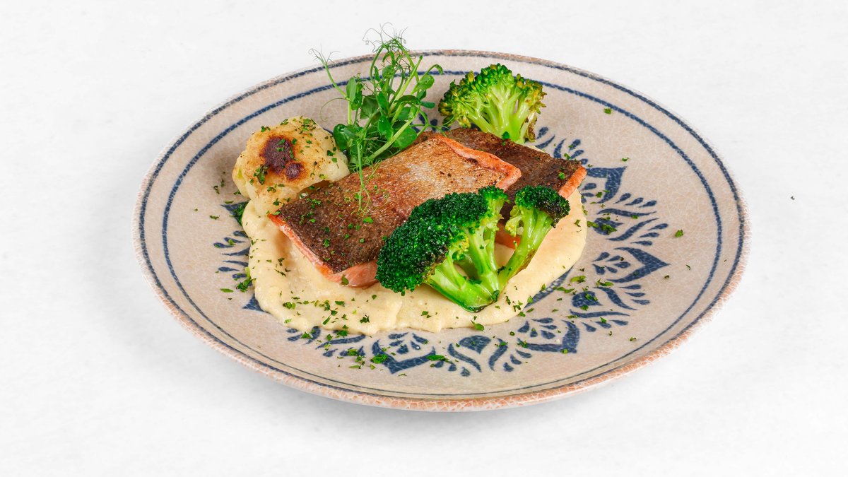Smoked trout with horseradish cream, quail eggs and roasted apple