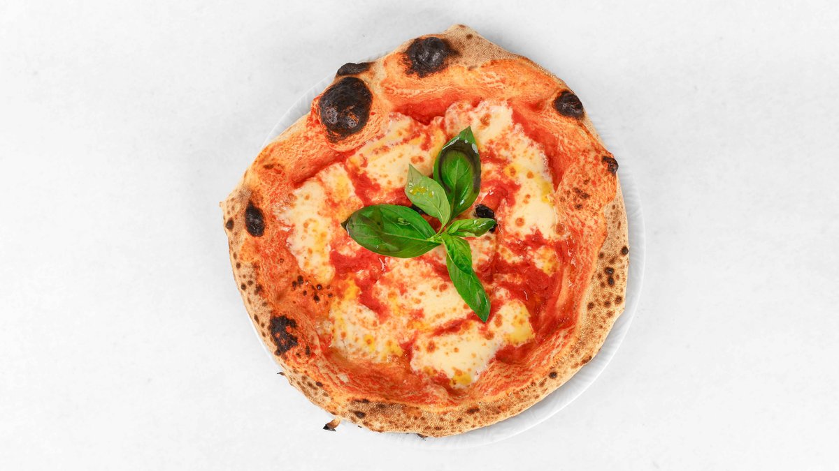 Pelati, mozzarella fior di latte, parmezan, sveža bazilika, ekstra deviško olivno olje V ceno jedi je všteto doplačilo 0.50 eur za biorazgradljivo embalažo