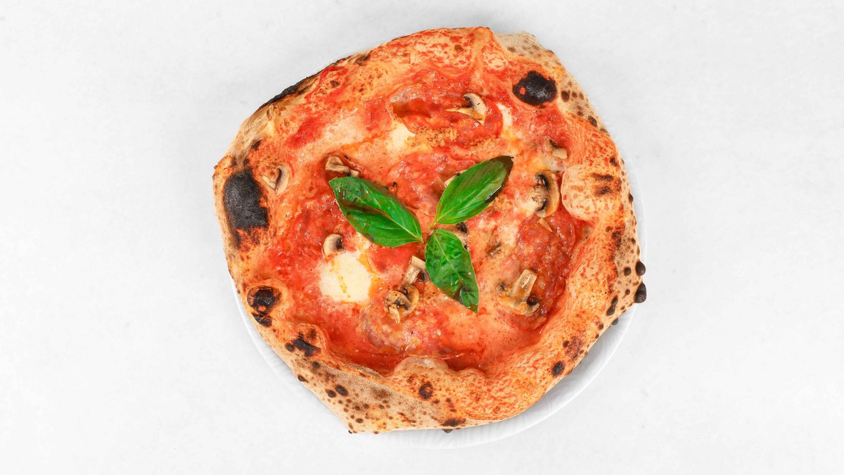 Pelati, mozzarella di buffala, pekoča salama, sveži šampinjoni, česen, sveža bazilika, pikantno olje V ceno jedi je všteto doplačilo 0.50 eur za biorazgradljivo embalažo