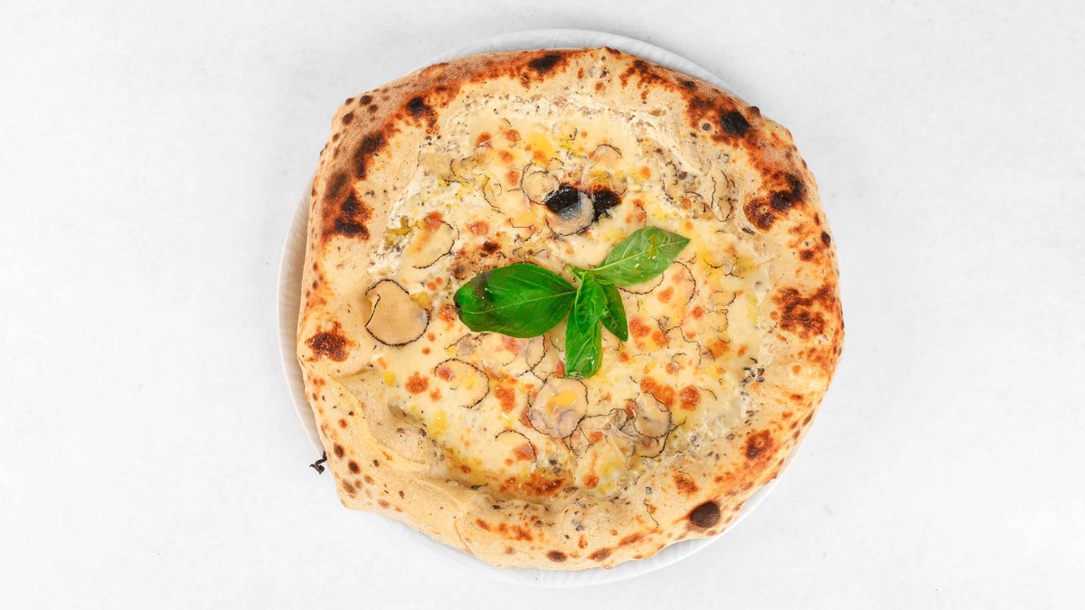 Krema tartufov, mozzarella fior di latte, panceta, ribani tartufi, tartufovo olje V ceno jedi je všteto doplačilo 0.50 eur za biorazgradljivo embalažo