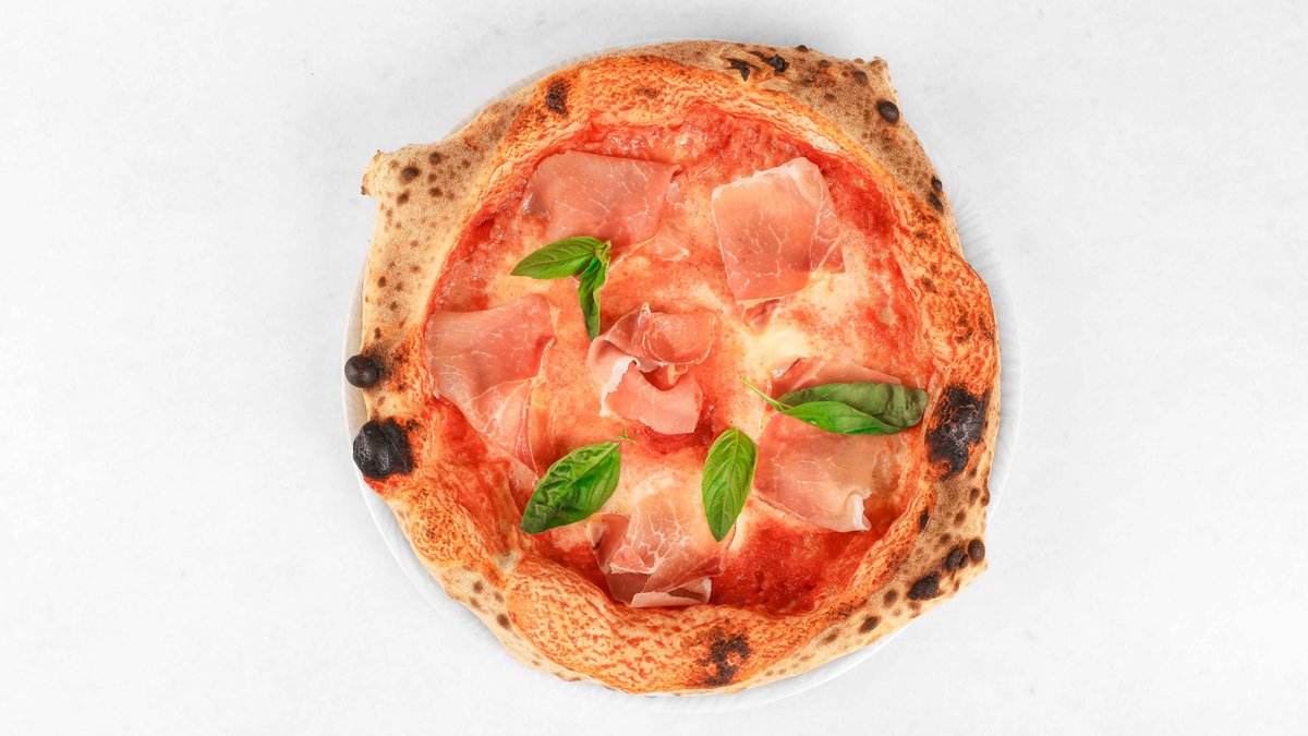 Pelati, mozzarella fior di latte, dimljen kuhan pršut, sveži šampinjoni, ekstra deviško olivno olje V ceno jedi je všteto doplačilo 0.50 eur za biorazgradljivo embalažo