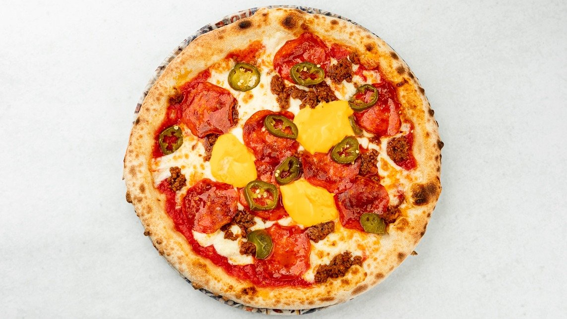 ti San Marzano, Fior di Latte, mleto meso, jalapeno, domač kulen, nacho sir