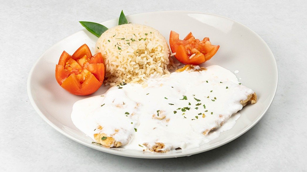 Paradižnikova omaka, čebula, piščančji kebab, oliva