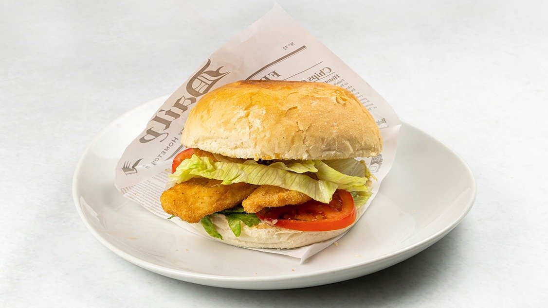 Domača bombeta, file ocvrtega osliča, tatarska omaka, ketchup, solata, paradižnik, paprika