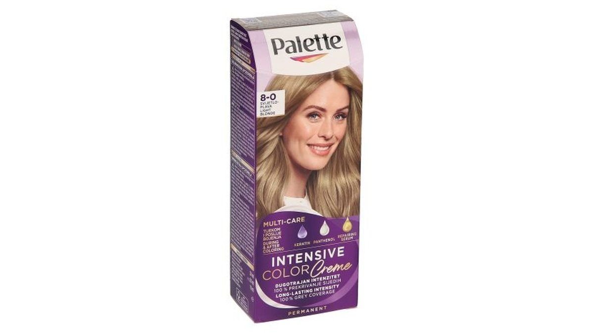 Barva za lase svetlo plava 8-0 intensive color creme, Palette