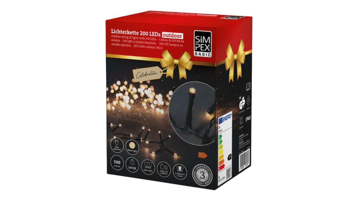 LED lučke v topli beli barvi s priključnim kablom (200 lučk)