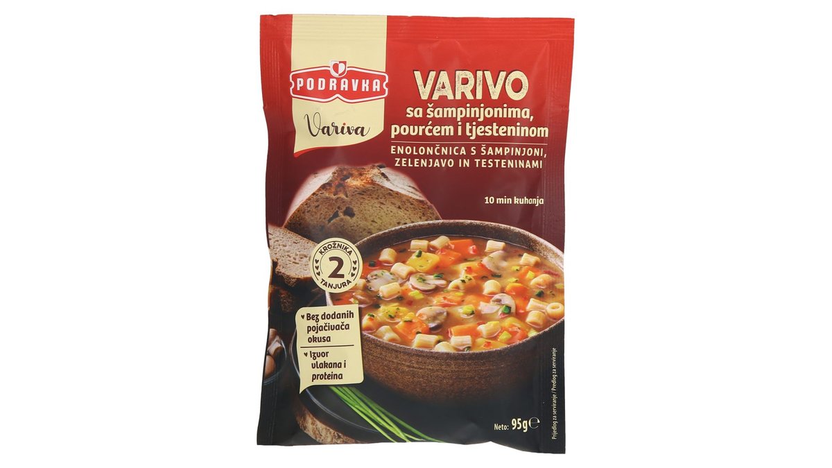 Enolončnica s šampinjoni, zelenjavo in testeninami, Podravka (95 g)
