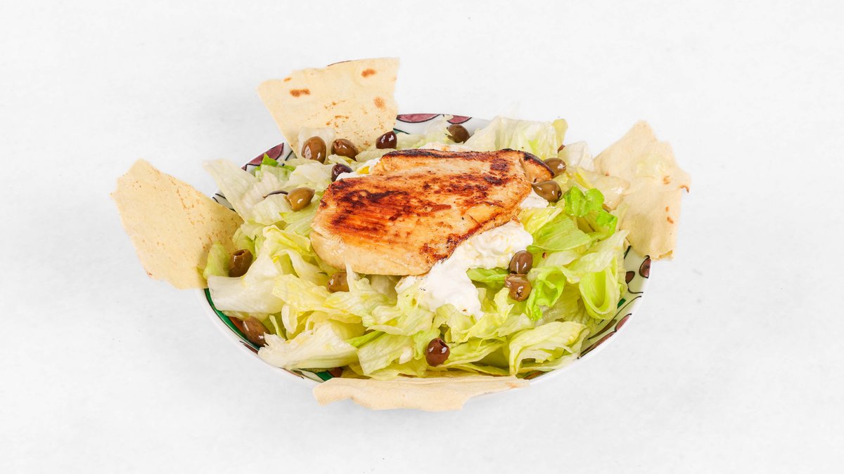 Solata, pečena piščančja prsa, stracciattela, olive taggiaske V ceno jedi je všteto doplačilo 0.50 eur za biorazgradljivo embalažo