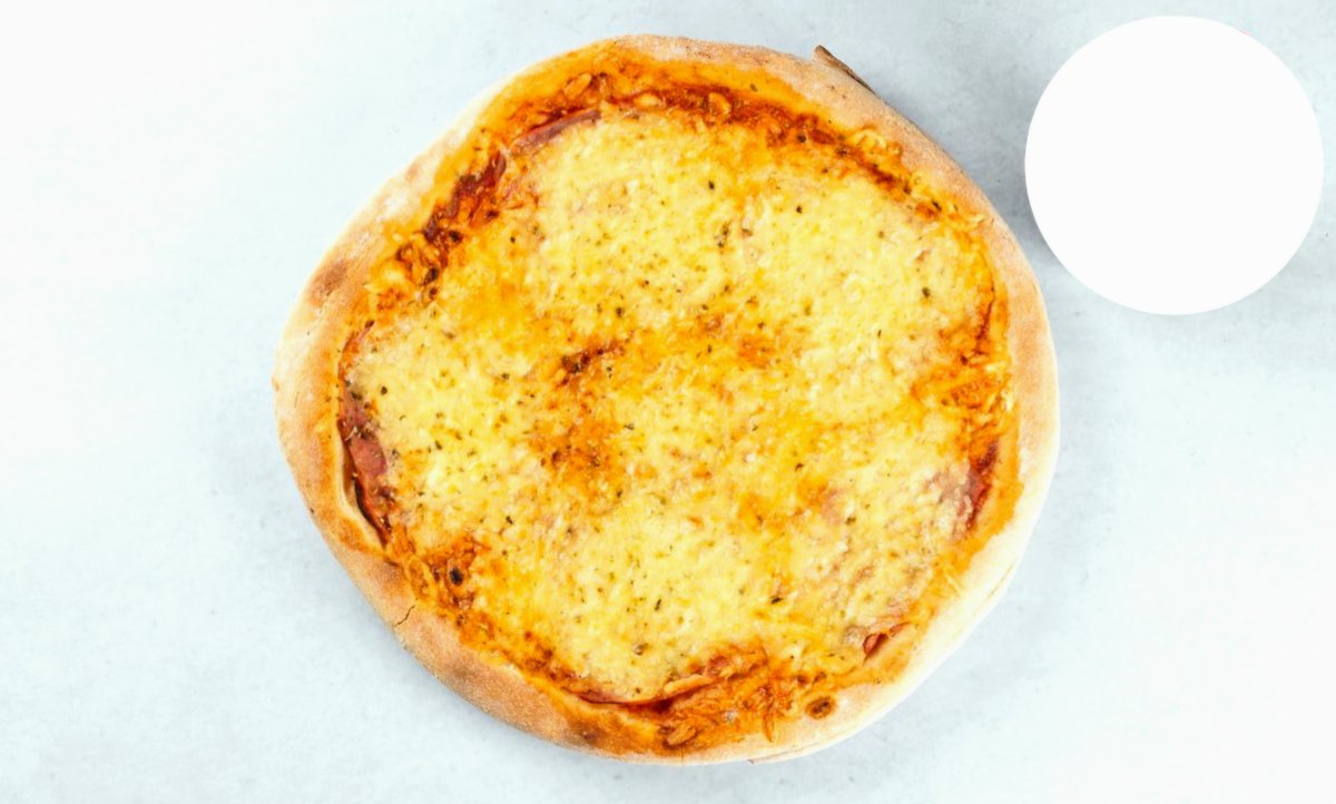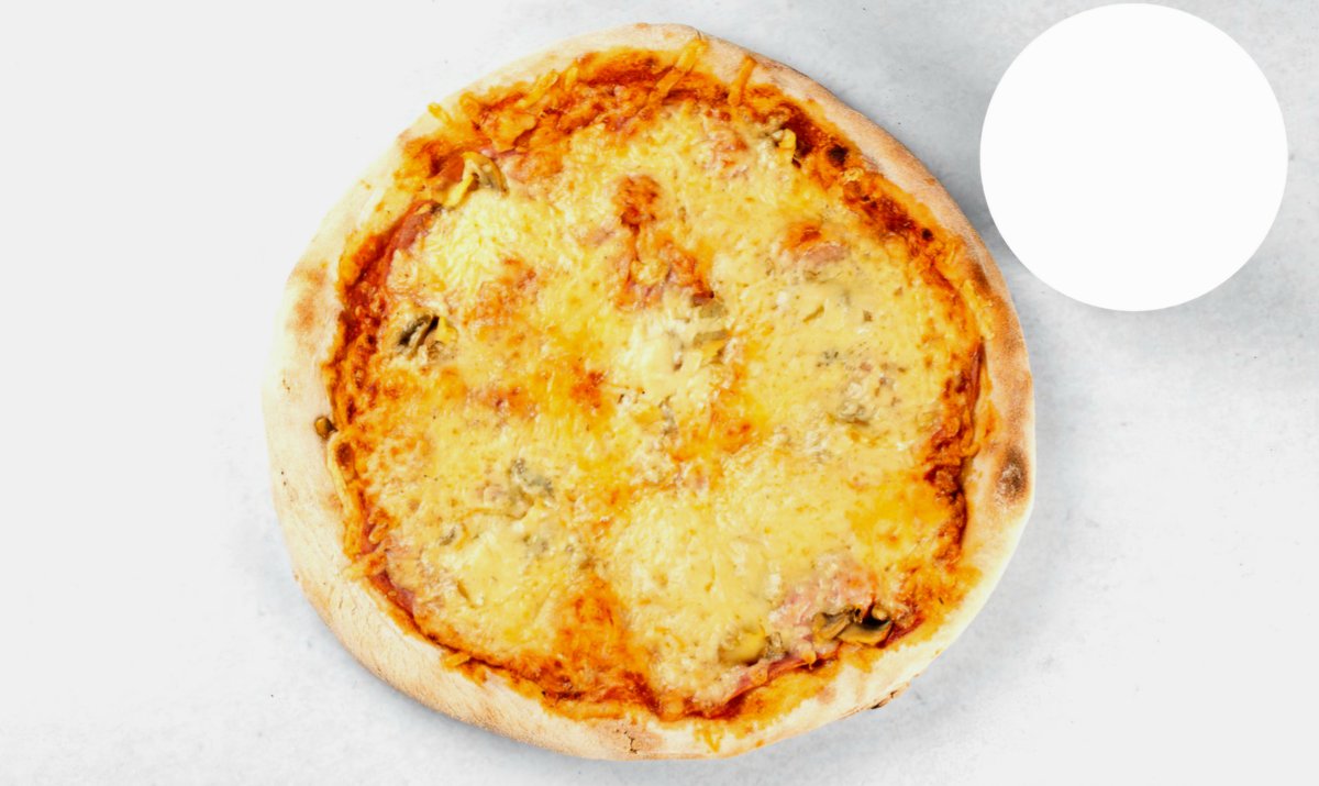 Napolitansko dolgo vzhajano testo, paradižnik San Marzano PDO, sir Mozzarella, kuhana Šunka, ekstra deviško olivno olje, origano Dodatek: Tatarska omaka ali kečap (125 ml)