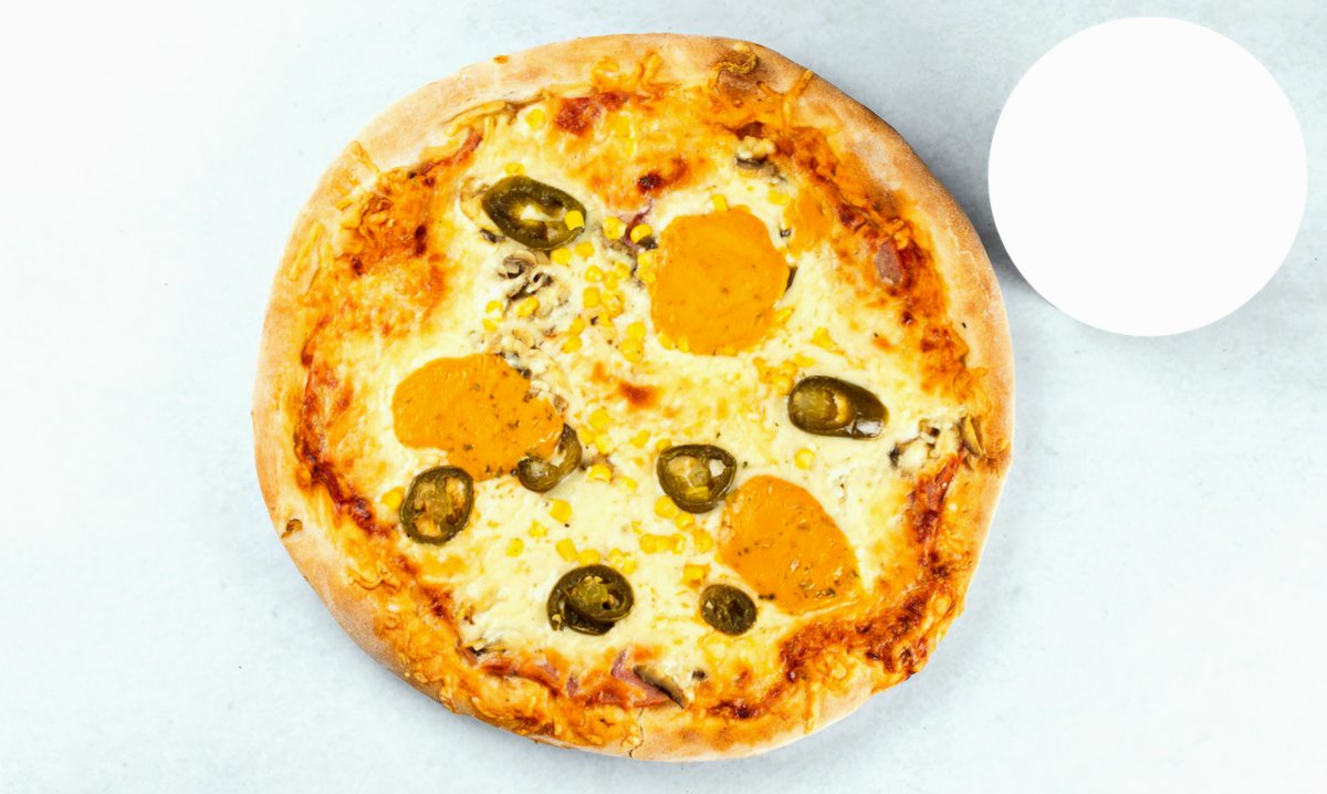 Omaka, sir, šunka, koruza, nacho, jalapeño feferoni, origano Dodatek: Tatarska omaka ali kečap (125 ml)